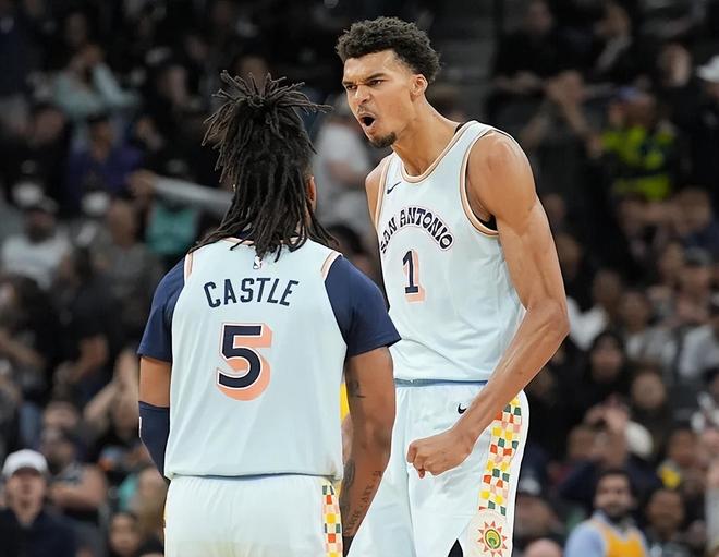 上賽季,文班亞馬因血栓問題賽季提前報銷,福克斯也接受手術提前報銷,即便卡斯爾斬獲新人王,馬刺隊還是僅僅取得了34勝48負的戰績,排在西部倒數第3位。塞翁失馬焉知非福?馬刺隊因此抽中了榜眼簽,選中了名門將後哈珀,文班亞馬又多了一個幫手!季前賽5場打完,馬刺隊瘋狂豪取5連勝,場均能轟下124.4分,排在聯盟第3位,僅次於魔術隊(126.5分)和火箭隊(130.8分)。尤其是麵對以華麗進攻著稱的總亞軍球隊步行者,馬刺隊場均轟下128.5分,可謂是以其人之道還治其人之身,也仿佛是他們新賽季的宣言:不一樣的馬刺要重現NBA了!