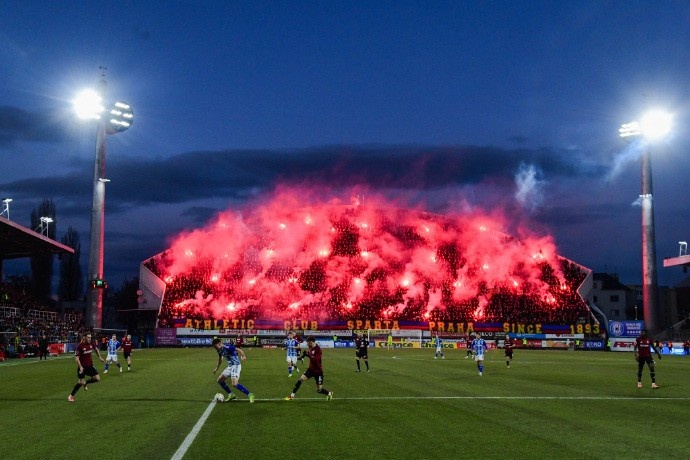 捷克甲,布拉格斯巴達做客奧洛穆茨。奧洛穆茨西格瑪這個半圓弧形看台,太有特色了。